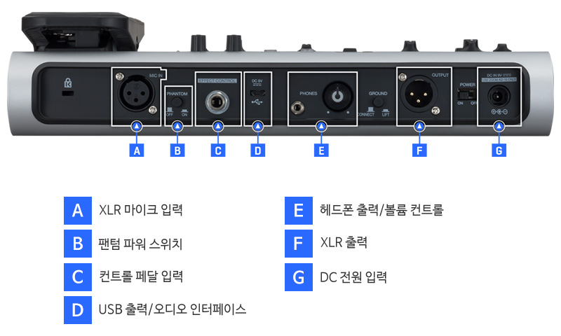 • 별매 옵션의 익스프레션 페달은 이펙트 파라미터에 대한 고급 제어 기능을 제공