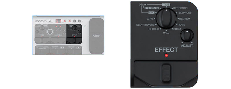딜레이, 코러스, 리버브와 같은 공간계는 물론 디스토션, 텔레폰, 비트 박스 등 보컬 용으로 개발된 10 가지의 이펙트를 내장했습니다.